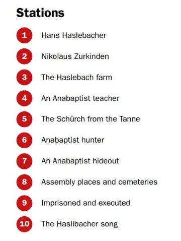A visit to the Anabaptist exhibition can also be combined with a circular hike (about 8km). Ten signs point to the life of the Anabaptists.